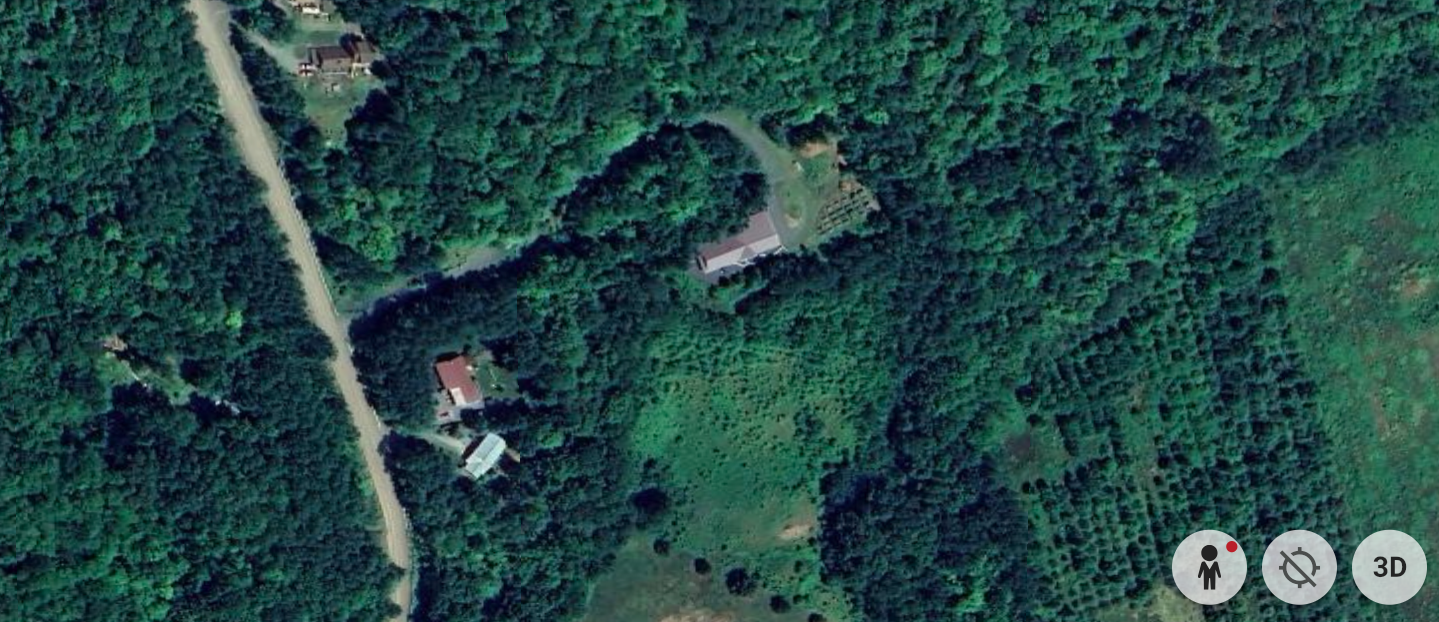 Below is a satellite image with a link to Google Earth, demonstrating the privacy of the location, south-facing of the house, and nearby surrounding lands.