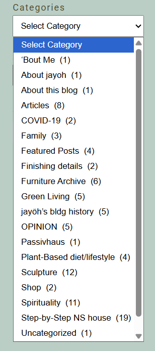 Construction began in the spring of 2009. It was fully completed in 2018. This house encompasses all that I have learned, as far as layout and technical aspects, from my former building experiences. Those historical buildings are listed in the menu, under: jayöh‘s bldg history.